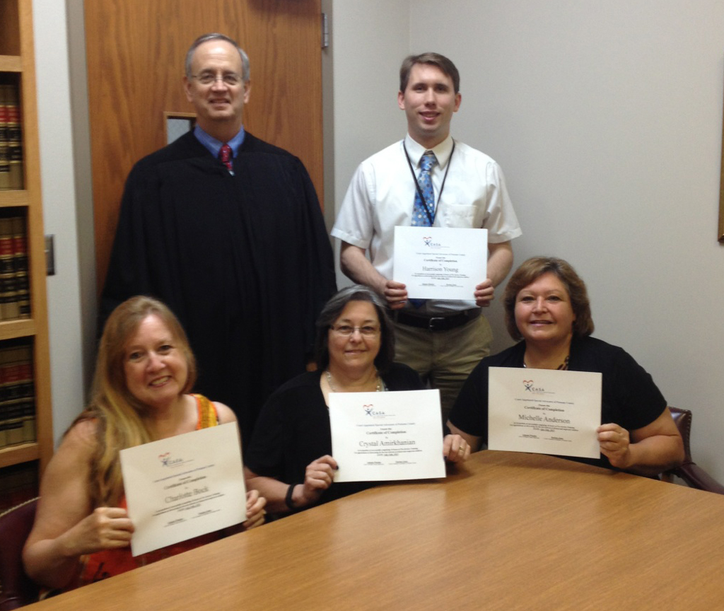 On July 16, 2015, 4 new CASA Advocates were sworn in by Judge Hudson. We are proud to have them and we welcome them aboard!