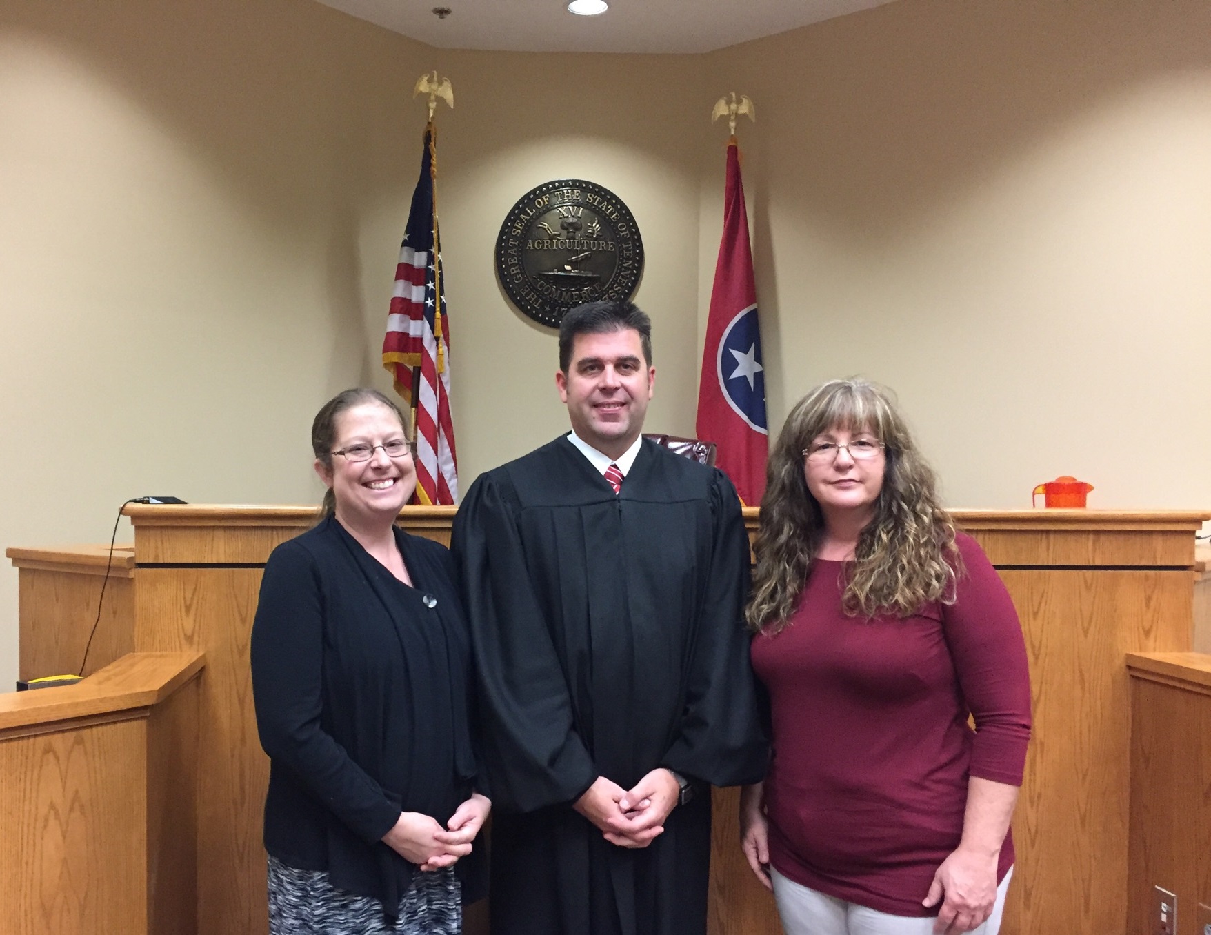 Pictured left to right: Carly Chandler, Judge Michael Collins, Vickie Nesbitt